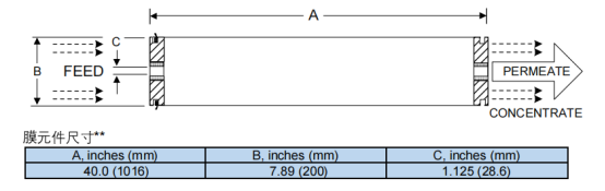 單支膜元件最大壓降:15 psi (0.10 MPa)
