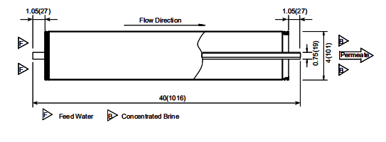| 型號 | 有效膜面積 | 標準脫鹽率 | 產(chǎn)水量 | 給水流道寬度 |